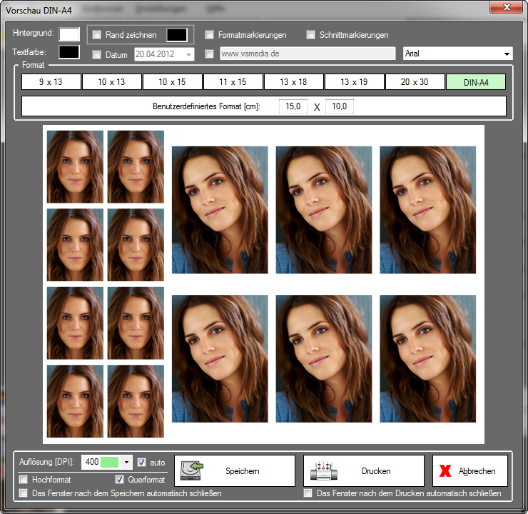 Vorschau auf einem 10cm x 15cm Fotoformat: